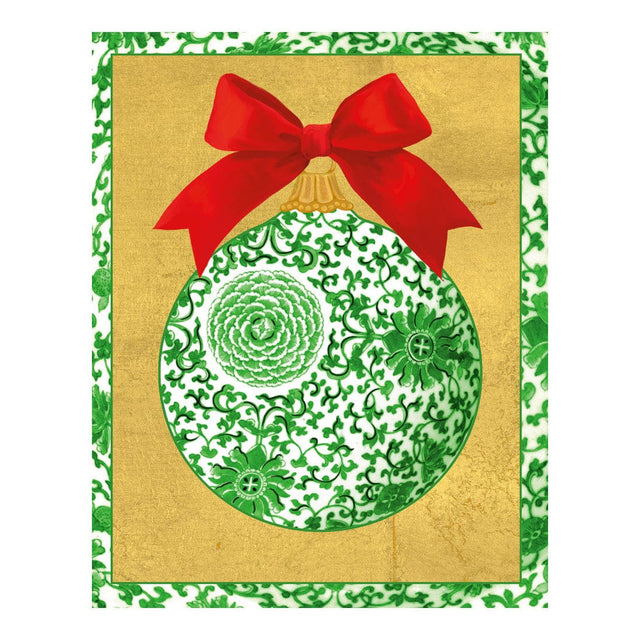 Send warm holiday wishes with 15 beautifully designed Christmas cards and envelopes. Each card features original artwork of a green ceramic ornament set against bold gold bronzed accents. Printed on high-quality, FSC-certified cardstock in Switzerland, these petite cards offer a festive and elegant way to share your seasonal greetings.