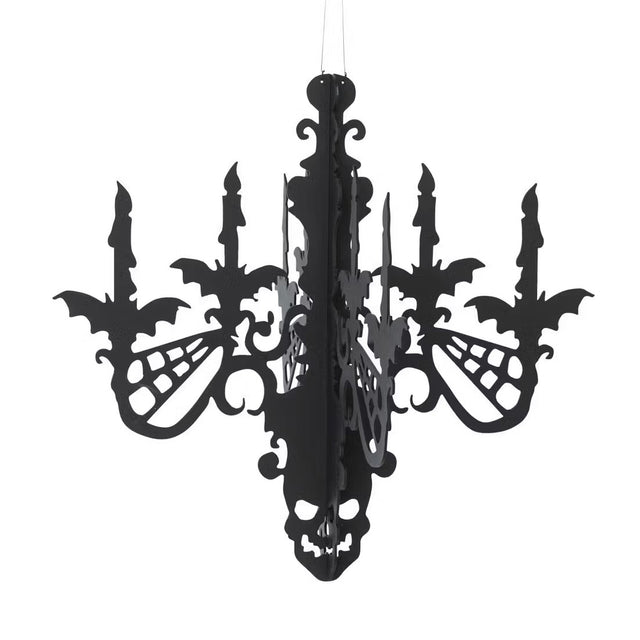 Add a striking touch of Halloween flair with this hanging chandelier made from interlocking MDF. Its intricate design features bats and spider webs in bold black, creating a dramatic focal point wherever it’s displayed. Perfect for entryways, mantels, or party décor, it brings a hauntingly stylish accent to your seasonal decorations.