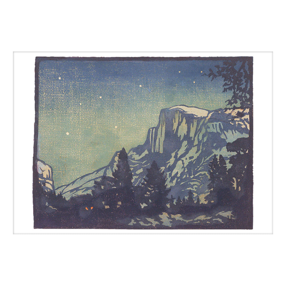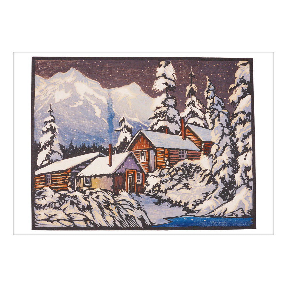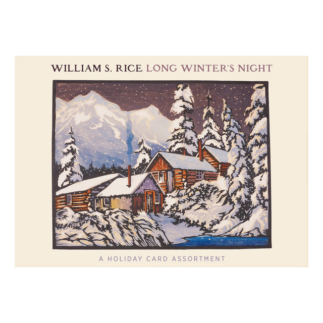 In his down-to-earth block prints, William S. Rice elegantly portrays the North American landscape in all its glory. In 1900, the Pennsylvania-born artist set out west across the continent, finding inspiration in its snow-covered peaks, forests, wildlife, and cozy homesteads. From dramatic mountain ranges to sleepy-eyed owls, these scenes were the primary subjects for his photography, sketches, and paintings, and later they became the basis for his block prints. Share the wintry beauty of the American West with the 4 images collected for this notecard set.