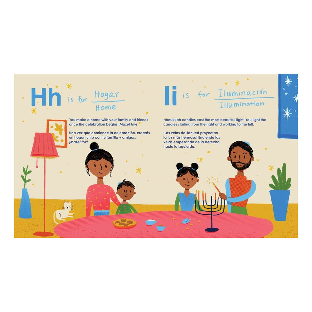 This alphabetical hardcover delves into each letter of the Spanish alphabet to bring to life the many items - from aceite and bendiciones to kugel and tierra - that shed light on the miracle of Hanukkah. Observe families lighting the menorah, spinning the dreidel, hearing the Hanukkah story, and indulging in latkes and sufganiyot for eight precious nights.