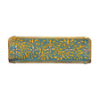 Bring home a piece of global craftsmanship with this upcycled brick mold from India, thoughtfully repurposed into a vibrant decorative accent. Once used in traditional brickmaking, each piece is made from reclaimed wood, giving new life to materials that carry a sense of history and reducing waste through reuse. Handpainted with intricate floral motifs in rich, lively hues, every mold is one of a kind. The combination of aged wood and metal banding adds texture and character, while the bold pattern brings warmth and color to any space. Perfect for holding small plants, organizing everyday items, or displaying as an object with a story, it adds an artful, sustainable touch to shelves, tables, or windowsills.