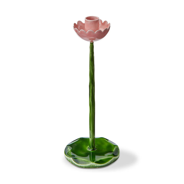 Bring a touch of garden-inspired whimsy to your home with this hand-crafted enamel iron taper candle holder, designed to resemble a delicate pink blossom perched atop a slender green stem. The softly curved petals cradle a standard taper, while the glossy green base evokes a fresh leaf resting beneath the bloom. Artfully detailed and full of charm, this decorative holder adds a playful yet elegant accent to mantels, dining tables, or bedside displays, creating a beautiful setting for candlelight and a hint of spring in any space.