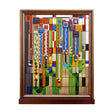 One of Frank Lloyd Wright’s most beloved designs, Saguaro Forms is beautifully reimagined in this vibrant glass panel. Inspired by the towering desert cactus, the composition blends bold geometry with rich color to capture Wright’s vision of nature expressed through structure. Painted with transparent enamels and kiln fired for lasting brilliance, the glass glows with light and depth from every angle. Framed in wood with a matching stand for desk or table display, and complete with hanging hardware, this striking piece brings warmth, artistry, and a touch of architectural history into any space.