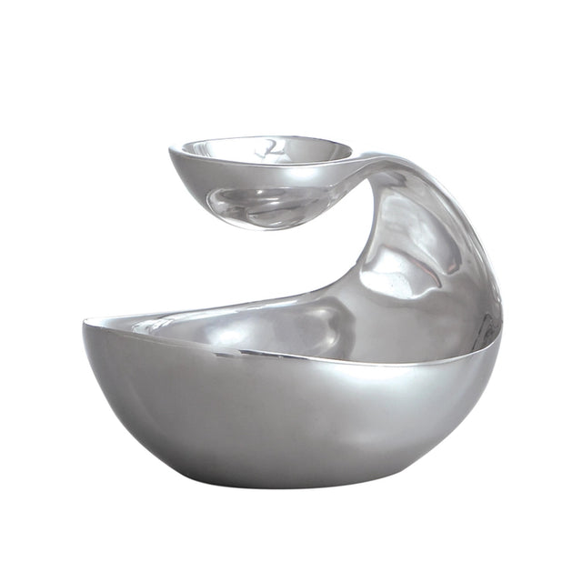 Ideal for small surfaces, the Scoop Server Mini is a functional and modern twist on the classic chip and dip. Use it for nuts and olives, dips and chips, chocolate medleys, and more. Or fill the bottom with stones and place a tea light in the upper bowl for an elegant non-mealtime look.