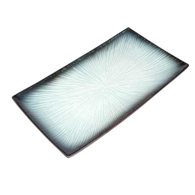 Elevate the table with the Seikai Rectangle Platter, a porcelain piece rooted in Japanese design. A softly radiating pattern spreads from the center in fine, delicate lines, creating a sense of movement and quiet energy, while the darkened edge frames the piece with subtle contrast. The elongated form enhances its clean, balanced look, making it as striking as it is understated. Crafted from durable, restaurant-grade porcelain, it is also dishwasher and microwave safe for everyday ease.