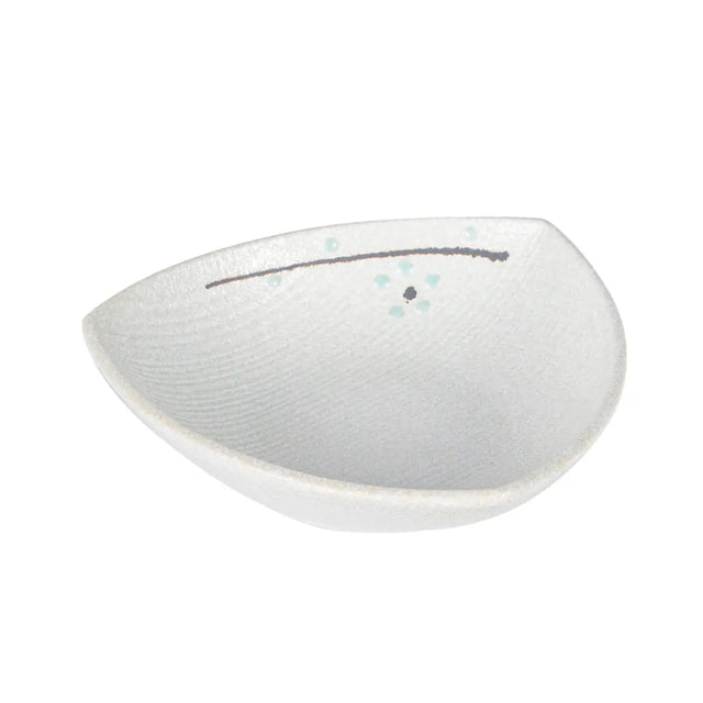 Bring an inviting touch to the table with the Yukino Hana Triangular Serving Plate, a porcelain piece rooted in Japanese design. Its gently curved triangular shape feels natural in hand, while the lightly textured surface is accented with delicate blossom-like details that evoke scattered petals. A simple brushstroke adds a sense of quiet movement, balancing the design with warmth and restraint. Crafted from durable, restaurant-grade porcelain and safe for both dishwasher and microwave use, this piece holds up beautifully to everyday use.