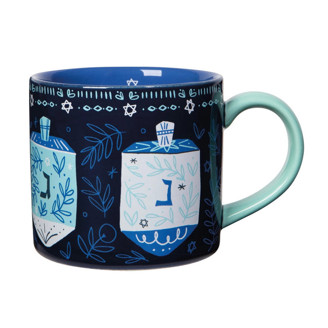 Celebrate Hanukkah with this delightful Dreidels mug, showcasing playful whirling dreidels in shades of blue accented with metallic foil for a festive shimmer. Crafted from durable 100% stoneware, it holds 14 oz. of your favorite hot or cold beverages, making it perfect for cozy mornings, holiday gatherings, or eight days of celebration. The mug comes packaged in a giftable box that can later be repurposed to store trinkets, keepsakes, or other small treasures, adding an extra touch of thoughtful charm. Dishwasher and microwave safe, it combines practicality with holiday cheer for a meaningful and stylish addition to your seasonal décor.