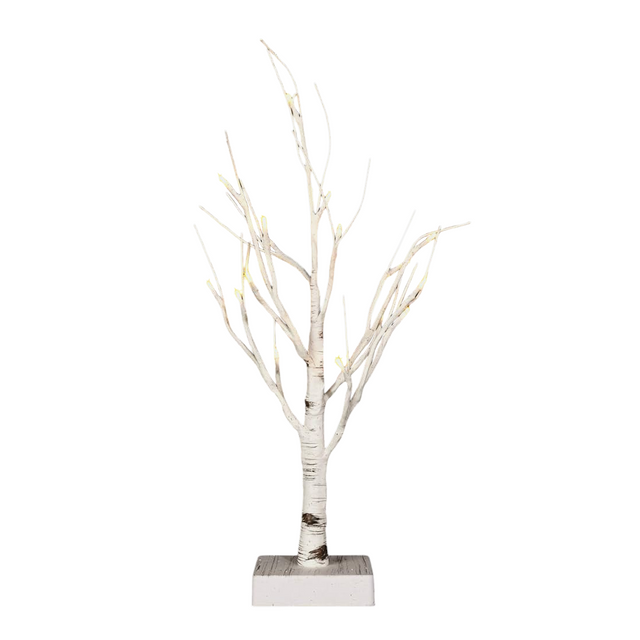 Featuring 16 warm white LED lights and white branches, this tabletop birch tree creates a cozy ambiance. With a 6-hour timer that repeats every 18 hours, it's convenient and energy-efficient. These lights have a lifespan of approximately 50,000 hours, providing long-lasting beauty to your surroundings.